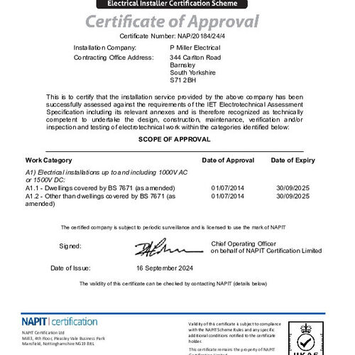 P Miller Electrical has just been awarded a Three Best Rated Certificate of Excellence for top electricians in Barnsley!